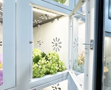 Utilizing targeted airflow circulation to effectively extend floral storage lifespan while maintaining hydrating freshness.